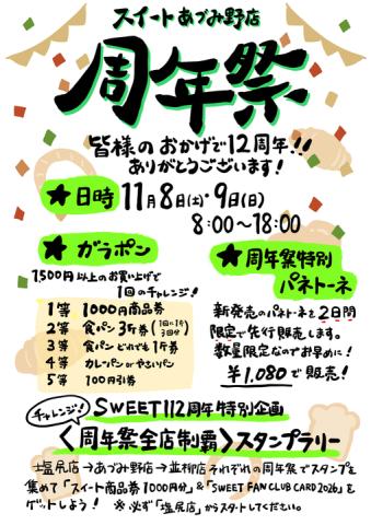 11月8日(土)・9日(日)はスイートあづみ野店の周年祭