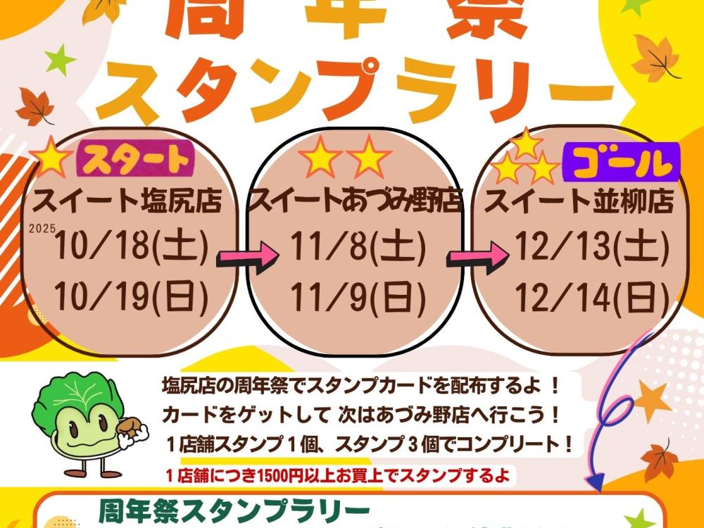 スイート塩尻店の周年祭を皮切りに11月はスイートあづみ野店、12月はスイート並柳店と、周年祭が3か月連続で開催されます。