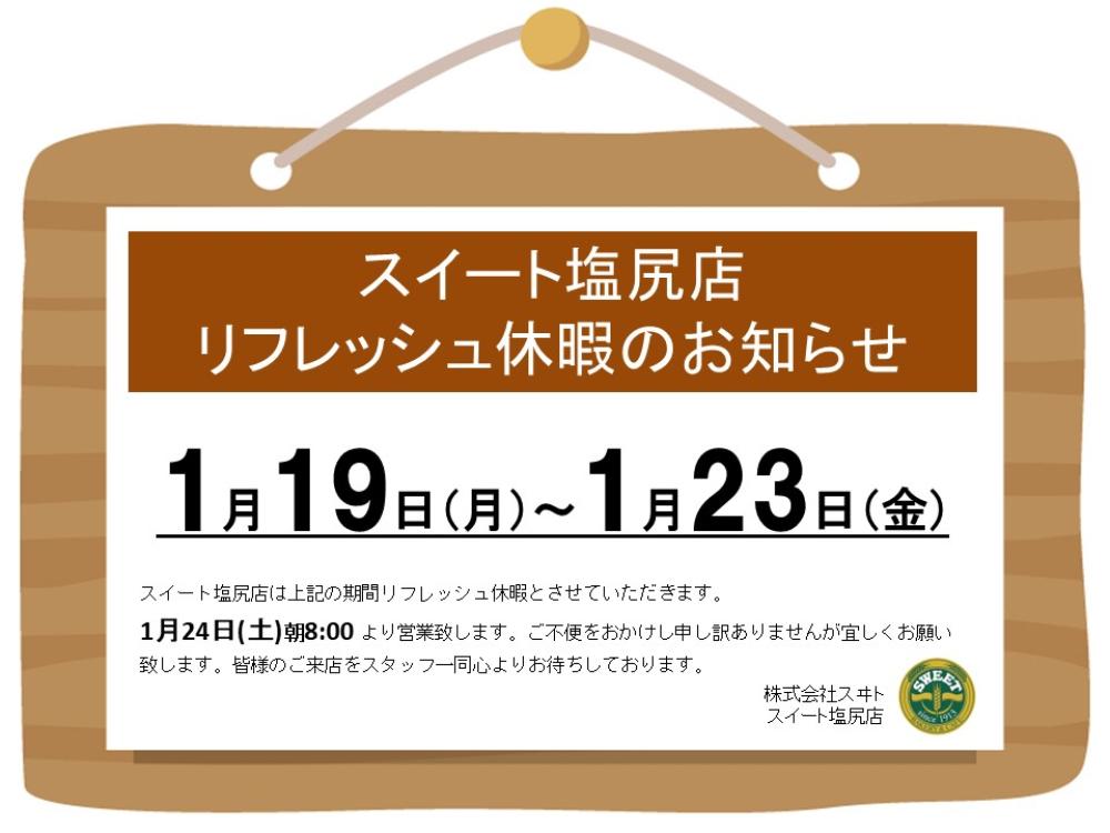 スイート塩尻店 リフレッシュ休暇のお知らせ
