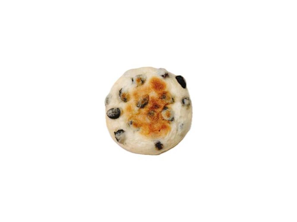 ツヤっとした黒豆と、濃厚なクリームチーズをソフトフランスの生地に包み、平たく押し焼きにしました。
