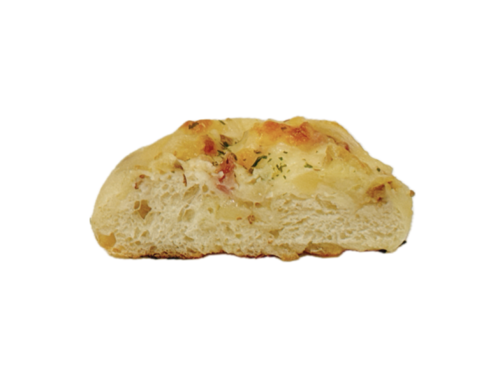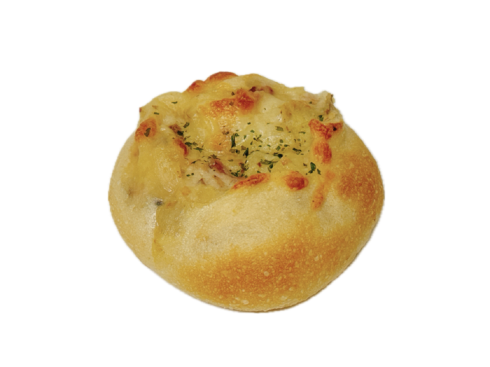 アメリカ発祥であるクラムチャウダーを、スイート特製のフランス生地で包み込み、シュレッドチーズをのせて焼き上げました。ミルクをベースにしたクリームソースの中に、海の香りのクラムチャウダー、角切りポテト、燻しベーコンをくわえ混ぜ合わせた具だくさんなスープは、もちもちなフランス生地に良く合います。寒くなった冬に食べたくなる 一品です。