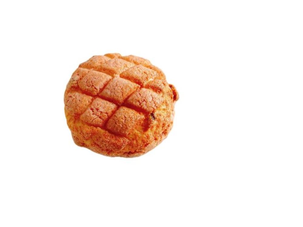 いちごメロンのクッキー生地にドライいちご、チョコチップを練り込み、土台になるブリオッシュ生地にのせて焼き上げました。